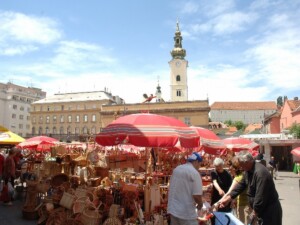 Najprej se odpravimo proti tržnici Dolac, glavnemu trebuhu mesta. Priročno je videti, kaj se tam ponuja, kajti ponudba zagrebških restavracij je v veliki meri odvisna od ponudbe na tržnici Dolac. Pokusimo kakšno izmed številnih zagrebških kulinaričnih specialitet. Branjevke, številne pridejo na Dolac iz bližnjih manjših krajev Zagreba, tokrat ponudijo odličen domač sir, skuto, kislo smetano.
