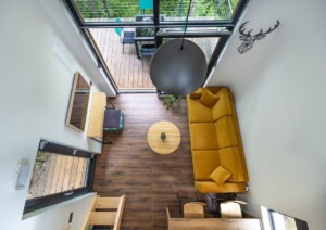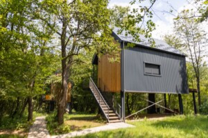 Hišice na drevesih so enakega tlorisa in imajo sobo na galeriji, z veliko posteljo za dve osebi, ker pa se kavč lahko raztegne, lahko vsaka hiška sprejme 4 osebe. Gostje v prvem nadstropju lahko uživajo v popolnoma funkcionalni kuhinji, kopalnici in dnevni sobi, ki vodi na teraso in ponuja pogled na gozd.